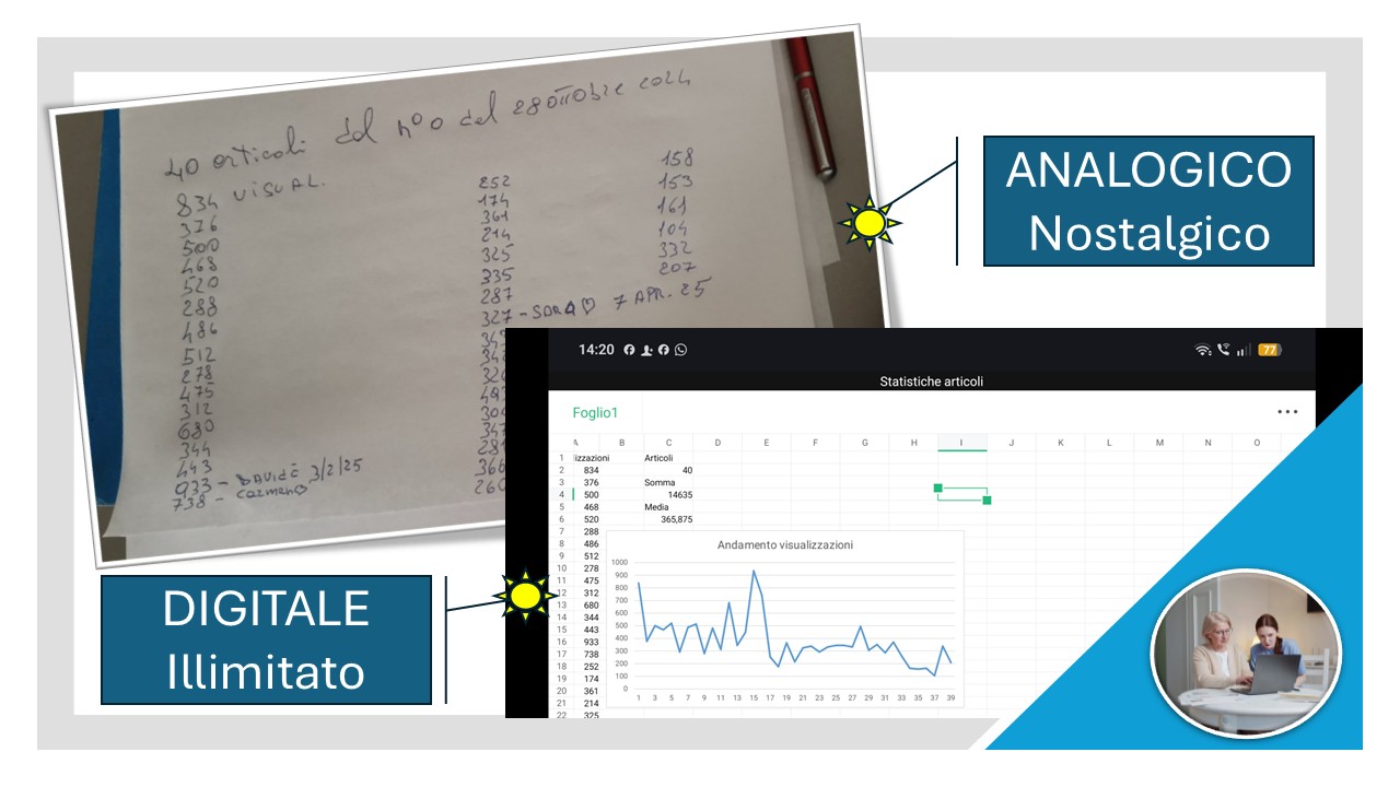 Nella settimana dei 40 gradi di calore … diamo i numeri! 40 articoli, centinaia di visualizzazioni, picchi eccezionali, media di 365 visualizzazioni per articolo. Tutto inimmaginabile all’inizio di questa bella esperienza editoriale. Giochiamo con i dati analogici e digitali relativi ai primi 40 articoli della nostra rubrica, soprattutto per evidenziare le differenze generazionali nell’uso della lettura dati. Inizialmente l’indagine è…