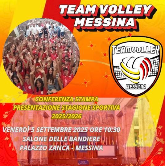 Venerdì 5 settembre si terrà la conferenza stampa di presentazione della stagione agonistica 2025/2026 della società Team Volley che avrà luogo presso il Salone delle Bandiere di Palazzo Zanca a partire dalle ore 10:30.