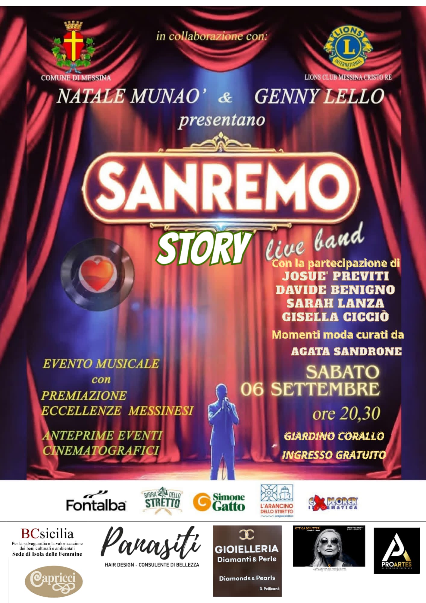 Sabato 6 Settembre alle ore 20.30 al Giardino Corallo di Messina si terrà lo spettacolo Sanremo story interpretato da una live band , con la voce di Natale Munaò ,noto artista e presentatore messinese. Attraverso le canzoni più rappresentative e iconiche , che hanno fatto la storia della musica a partire dal 1968 fino all’ultima edizione 2025 del Festival canoro più importante d’Italia, gli spettatori potranno apprezzare il talento di artisti espressione del nostro territorio. L’evento organizzato in collaborazione del Club Lions Messina Cristo Re e patrocinato dall’amministrazione comunale di Messina, rappresenterà l’occasione per conferire il Premio L .C. Cristo Re, quale prima edizione, fortemente voluta dal club service, ai talenti ed alle eccellenze, che con la loro attività si sono distinti e hanno apportato valore aggiunto alla nostra città. Durante la serata l’ assessore alle politiche sportive, spettacoli e grandi eventi, Massimo Finocchiaro ed il presidente Lions Club Cristore, Salvo Grasso, consegneranno il premio alla giornalista Gisella Cicciò , noto volto televisivo, talentuosa e dotata di grandi capacità professionali ed umane, impegnata e dedita anche ad attività di carattere sociale; al cantante Josuè Previti, giovanissimo artista apprezzato a livello nazionale ed internazionale , protagonista nel programma Io canto (canale5) e The voice (Rai2) vincitore di area Sanremo, reduce da tour di concerti di Lara Fabian; Il cantante Davide Benigno, eccellente tenore interprete di concerti e opere a livello nazionale ed internazionale; Sarah Lanza ballerina, coreografa, insegnante di danza , professionista talentuosa dotata di grandi capacità artistiche, l’attore Franco Arcoraci, e Zeppe Favano anche lui attore scomparso prematuramente. La serata sarà presentata da Natale Munaò e Genny Lello. Durante la manifestazione si esibirà in una performance di teatrodanza Cristina Pasqua del collettivo spazio22 diretto da Sarah Lanza, ci saranno, inoltre, dei momenti moda curati dalla stilista Agata Sandrone, le modelle indosseranno degli abiti d’epoca arricchiti dai gioielli selezionati da Donatella Pellicanò. L’evento includerà anche anteprime di eventi cinematografici, offrendo al pubblico un’esperienza culturale a 360 gradi. L’iniziativa è supportata da sponsor locali, oltre al patrocinio della BC Sicilia associazione che promuove la salvaguardia e valorizzazione dei beni culturali e ambientali. Un’opportunità imperdibile per gli amanti della musica e per chi desidera trascorrere una serata di qualità celebrando le eccellenze messinesi, l’ingresso è gratuito.