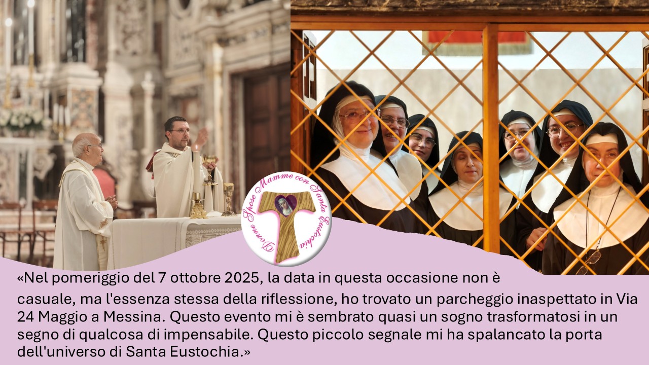 La storia di Santa Eustochia Calafato, nata a Messina nel 1434 e morta nel 1485, è davvero affascinante. Riesco ad approfondire questa straordinaria figura grazie alla preziosa accoglienza ricevuta da madre Agnese Pavone, superiora del monastero e da Daniela Bucca. che mi hanno portato a raccontare del Giubileo della Vita Consacrata, evento mondiale svoltosi a Roma nei giorni 8 e 9 ottobre 2025 e che ha avuto la sua celebrazione a Messina il 7 ottobre …. nel momento in cui posteggiavo!!!Benvenuto nel luogo dei “segni e dei sogni”, così inizia il racconto dell’affascinante vita della santa, donatomi da Daniela Bucca, corresponsabile di un gruppo di preghiera che della divulgazione della vita di santa Eustochia ha fatto una missione. Non finirò mai di ringraziare queste straordinarie donne, con loro e con gli amici lettori della rubrica, assumo l’impegno di dare un senso a questo segno, cercando di trasformare il sogno in una realtà presente e diffusa. Il primo passo è farvi conoscere proprio il gruppo facebook dei segni e dei sogni … https://www.facebook.com/groups/643933869308157/?ref=share.